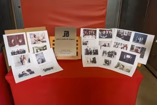 El legado de Juana de Aizpuru entregado a la Caja de las Letras del Cervantes, que incluye una placa y fotografías de relevancia personal y profesional, acompañada por artistas como Dora García o Pedro Cabrita Reis. - INSTITUTO CERVANTES