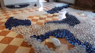 Como es habitual en las muestras de Fabre, el visitante podrá encontrarse múltiples piezas colocadas en sitios inesperados para el visitante --las palomas que ocupan una parte del techo de madera del claustro, los pájaros colgando de una habitación en la que parece que se esté celebrando una fiesta--, en una reflexión sobre la propia vida.