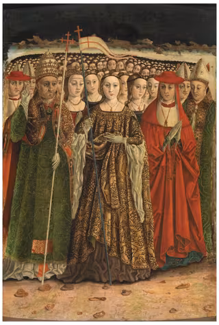 Entre las obras seleccionadas está 'Santa Úrsula con las once mil vírgenes', pintura realizada hacia 1490 y atribuida al Maestro de las Once Mil Vírgenes, sobre la que El Prado pregunta en cuántas personas sintetiza el autor esa "gran multitud".