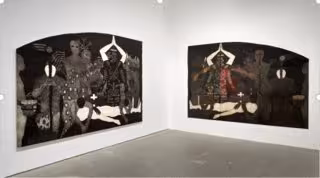 La muestra aborda la trayectoria de la artista desde sus primeras experiencias con el mito Abakuá, como imaginario que la acompaña desde la presentación de su tesis en la Academia Nacional de Bellas Artes San Alejandro en 1988, hasta las series de marcado carácter escenográfico y obras de gran formato que representan multitud de personajes y transitan un complejo universo visual y simbólico que sincretiza la mitología y el ritual Abakuá, con los principales elementos iconográficos de la religión católica.