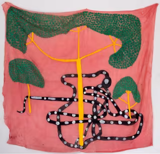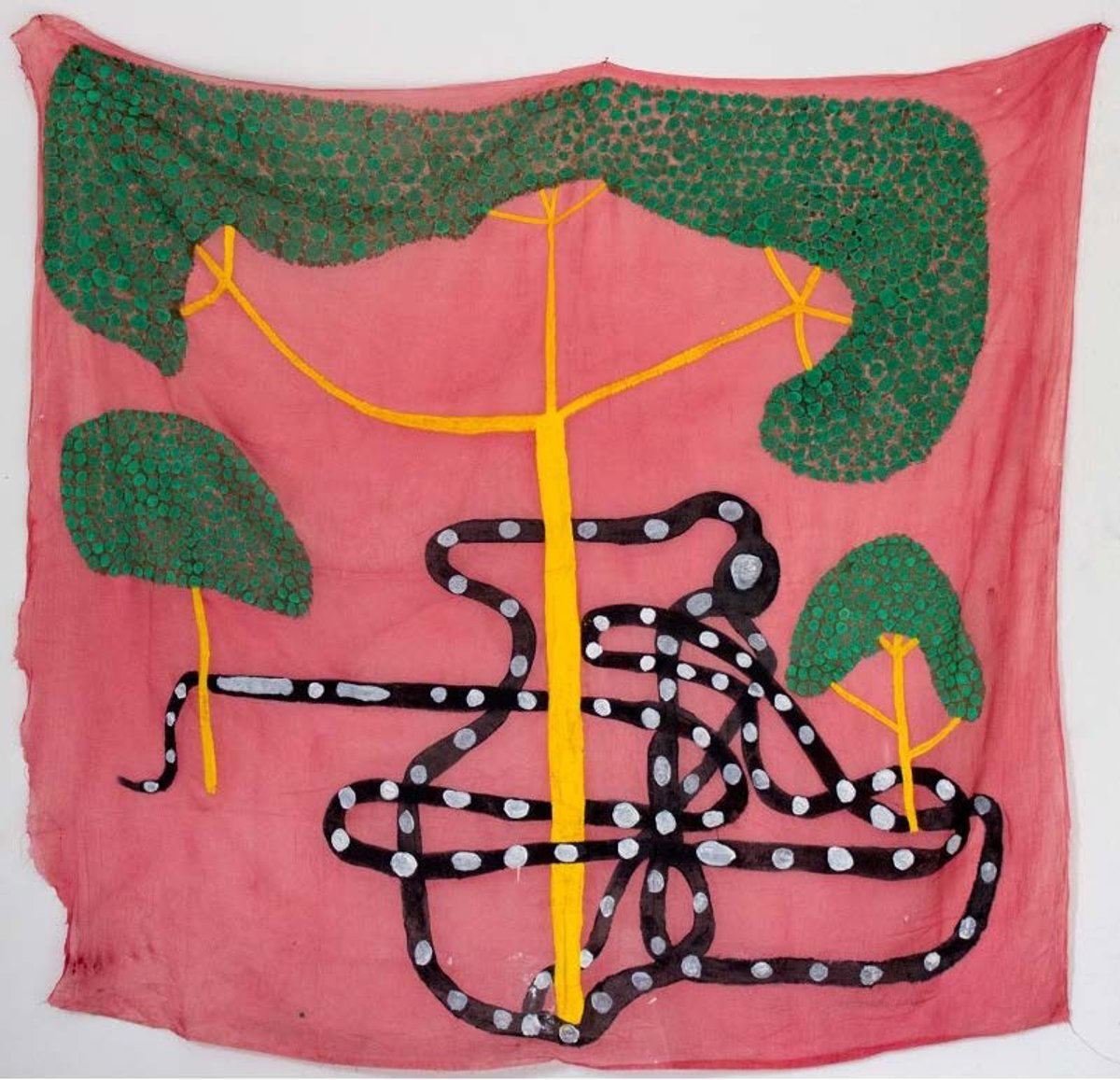 La obra 'Hii frare frare oru keki (Árbol amarillo con culebra a sus pies)', 2021. Acrílico sobre tela de algodón. Adquirida por el Museo Reina Sofía - MUSEO REINA SOFÍA
