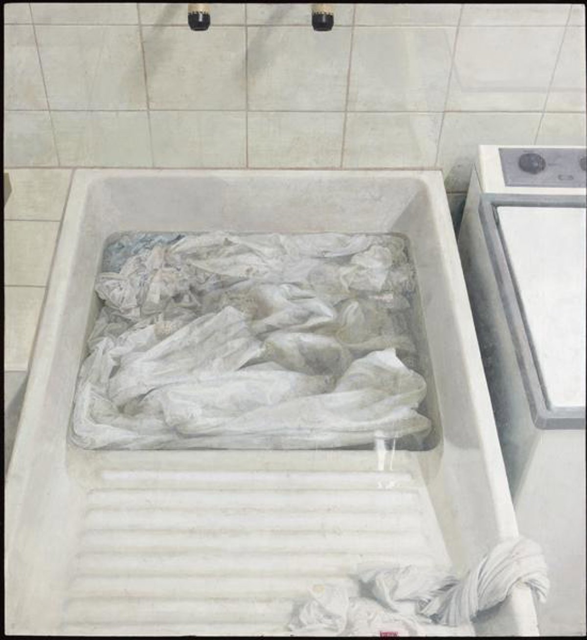 Respecto a 'Ropa en remojo', subrayó la "dificultad" de la composición, su carácater "poético" y la "destreza asombrosa" en la técnica de un óleo que muestra una humilde habitación de la colada, donde la luz, los matices y la textura representan "la esencia de la realidad", consiguiendo crear una de sus escenas domésticas "más conmovedoras"