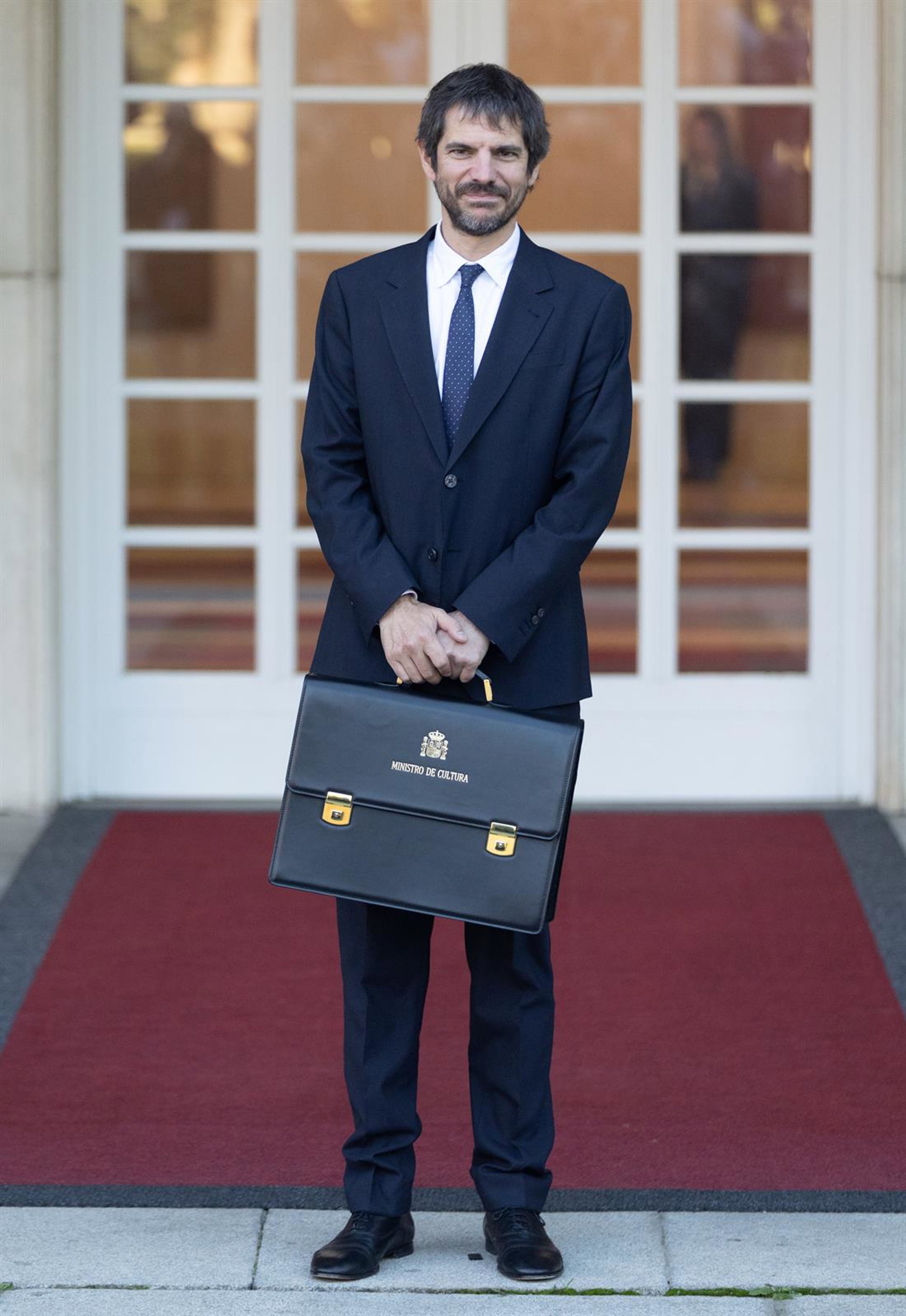 Archivo - El ministro de Cultura, Ernest Urtasun, posa con su cartera en la puerta de Moncloa. - Eduardo Parra - Europa Press - Archivo