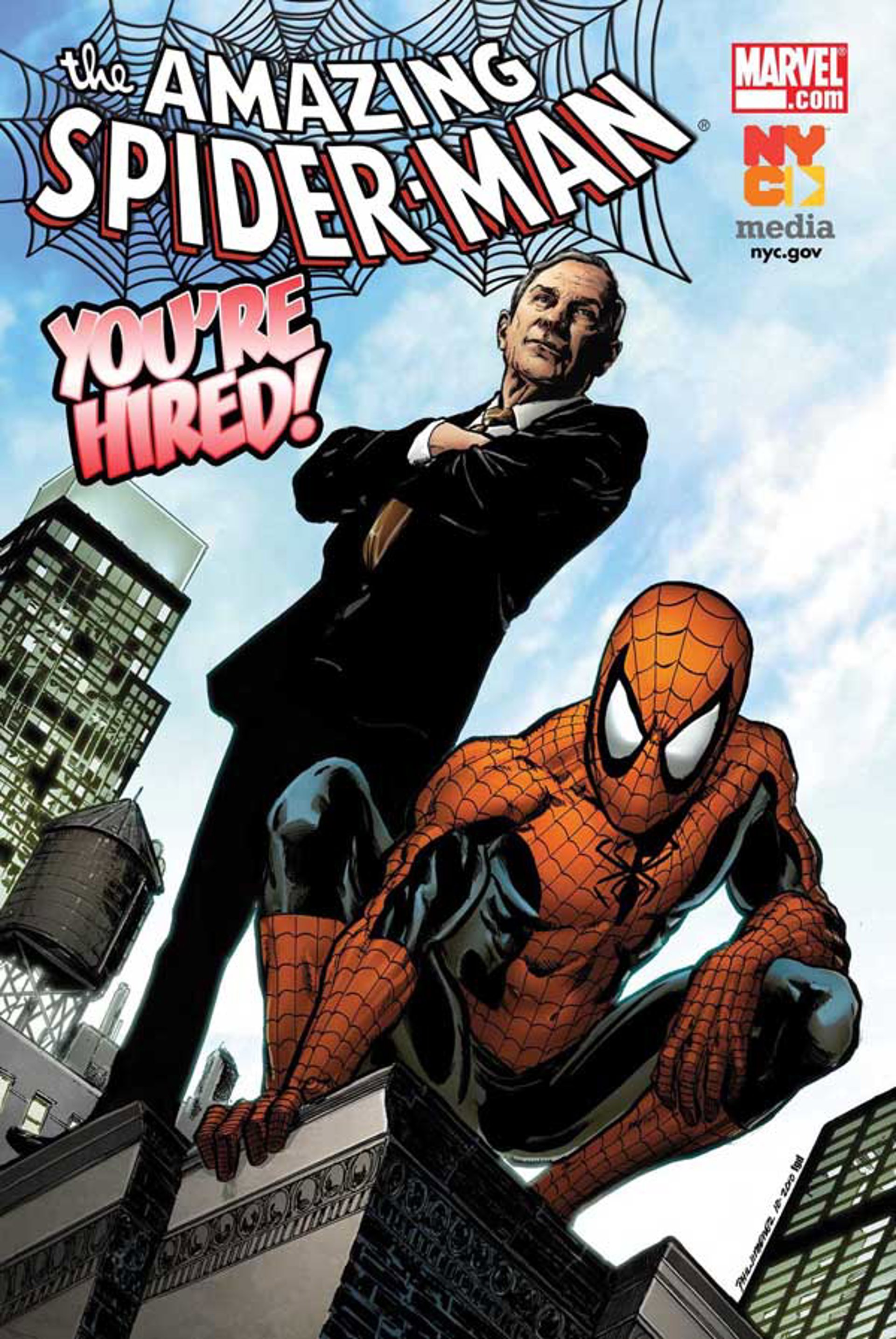 El alcalde de Nueva York, Michael Bloomberg, y el superhéroe unen fuerzas para luchar contra el desempleo en la ciudad en un cómic de ocho páginas a todo color titulado "Spiderman, ¡Estás contratado!".
