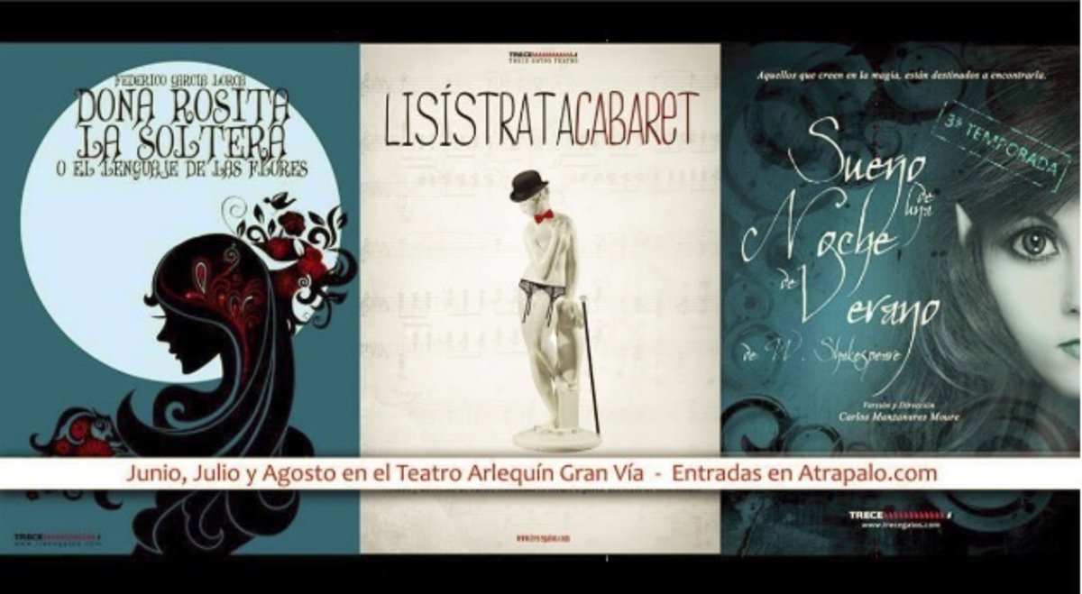 El Teatro Arlequín de Madrid acogerá este verano montajes de la compañía Trece Gatos, dirigida por Carlos Manzanares Moure, de las obras 'Sueño de una noche de verano', 'Doña Rosita, la soltera' y 'Lisístrata Cabaret', según ha informado la compañía.