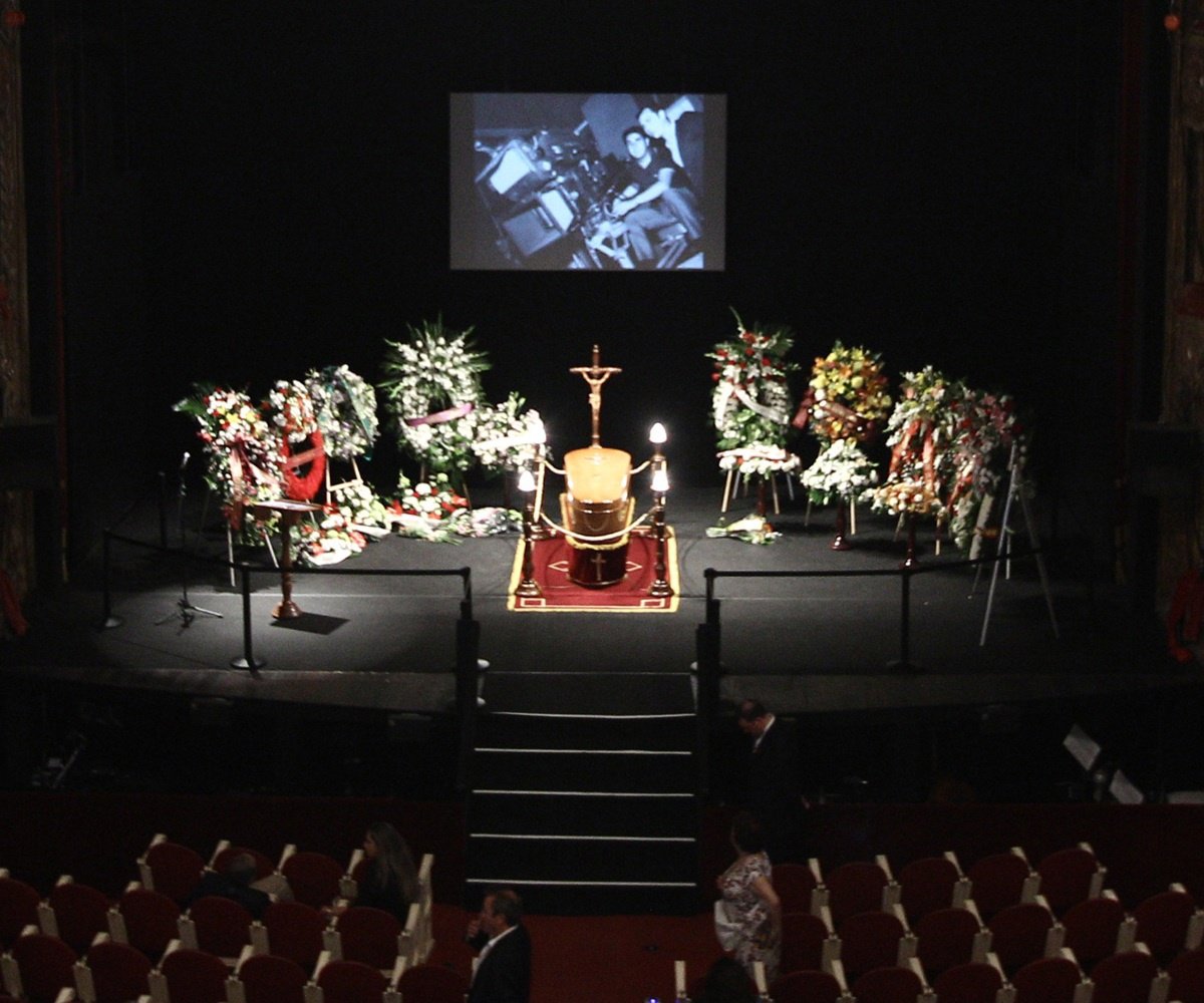 Desde primeras horas de la mañana se encontraban ya en el recinto el ex jefe de la Casa Real, Alberto Aza; el director del Teatro Español, Mario Gas; y el escritor César Vidal. Poco después fueron llegando los actores José Guzmán y Álvaro de Luna y el diseñador Elio Berhanyer. Poco a poco van entrando al Teatro a rendir su último adiós, amigos y personas anónimas.