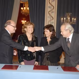 Los directores generales del Teatro Real y de Radio Televisión Española, Miguel Muñiz y Carmen Caffarel, respectivamente, firmaron hoy, en presencia de la ministra de Cultura, Carmen Calvo, un acuerdo de colaboración para divulgar la ópera a un público más amplio. Por ello, RTVE retransmitirá tres óperas de la temporada en curso del Teatro Real, en horario de máxima audiencia, dentro de la programación de Televisión Española. El Ente Público aportará 50.000 euros por cada retransmisión.