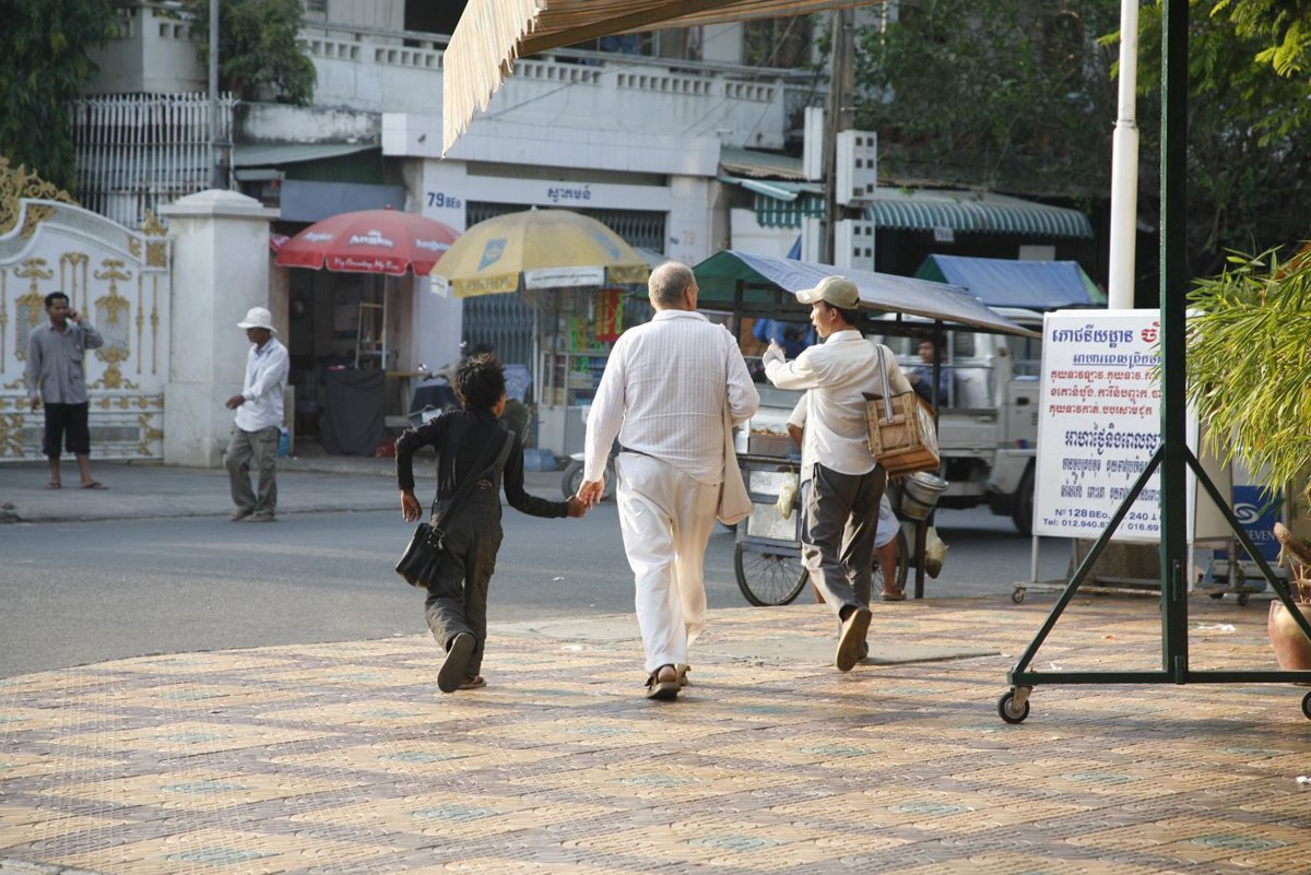 Los extranjeros que viven en el país o que lo visitan son el principal medio de subsistencia para niños, que trabajan como limpiabotas, vendedores ambulantes y otras ocupaciones precarias. Un 77% de la población de Camboya vive con menos de dos dólares al día.