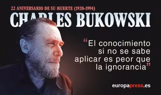 Se cumplen 22 años de la muerte de Charles Bukowski, autor de obras como El cartero, Escritos de un viejo indecente, La senda del perdedor o Factotum. Criticado y alabado a parte iguales, su estilo agresivo y soez no dejó indiferente a nadie y se recoge en una singular obra que cuenta con seis novelas, 14 ensayos y multitud de poemas.