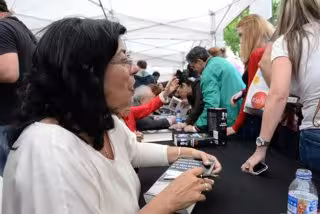 La autora de 'Las tres bodas de Manolita' ha sentenciado que "Sant Jordi es el día de los lectores", pero que los beneficios se los llevan los autores, afirmación que se sustenta en la buena acogida de su última novela, que figura en las listas de los más vendidos.