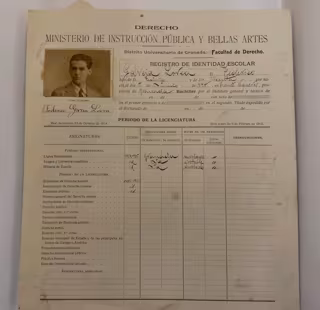 Ficha del registro de García Lorca en la Facultad de Derecho de la Universidad de Granada. - INSTITUTO CERVANTES