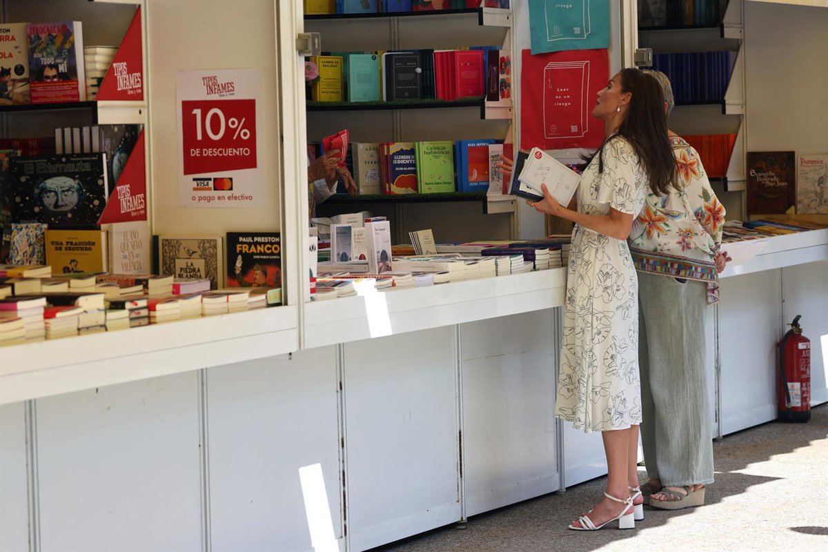 La Reina Letizia ha inaugurado de nueva una edición de la Feria del Libro en la que ha sido vitoreada en numerosas ocasiones por los asistentes a su recorrido habitual, se ha hecho selfies con los visitantes y ha compartido varios momentos con los más pequeños, además de recibir ejemplares de María Moliner, Federico García Lorca o Gabriela Mistral, entre otros.