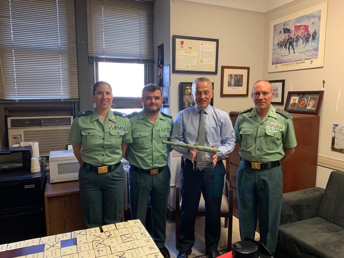 Entrega de las obras de Sor Juana Inés de la Cruz recuperadas por una subasta por parte del fiscal de distrito de Nueva York, Alvin Bragg, y el coronel jefe de la Unidad Central Operativa (UCO) de la Guardia Civil, Alfonso López Malo - GUARDIA CIVIL