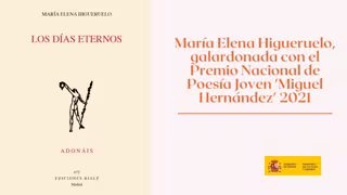 La poeta María Elena Higueruelo Illana ha recibido el Premio Nacional de Poesía Joven 'Miguel Hernández', correspondiente a 2021, por su obra 'Los días eternos'. El premio, concedido por el Ministerio de Cultura y Deporte, está dotado con 20.000 euros.