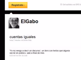 El escritor colombiano Gabriel García Márquez, Premio Nobel de Literatura en 1982, se ha dirigido implícitamente al peruano Mario Vargas Llosa a través de su cuenta de Twitter con el mensaje "Cuentas iguales".