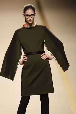 Y para dar color al próximo otoño-invierno, la paleta habitual de neutros, marrones, mostazas, pajas y tejas que colorean los trajes de tobillo ancho. Se combinan con colores más fuertes como el verde oliva y los rojos, ambos muy presentes en vestidos y faldas, azules intensos y dorados que dan color a un sugerente abrigo que invita a la mujer a salir la fría calle de la ciudad.