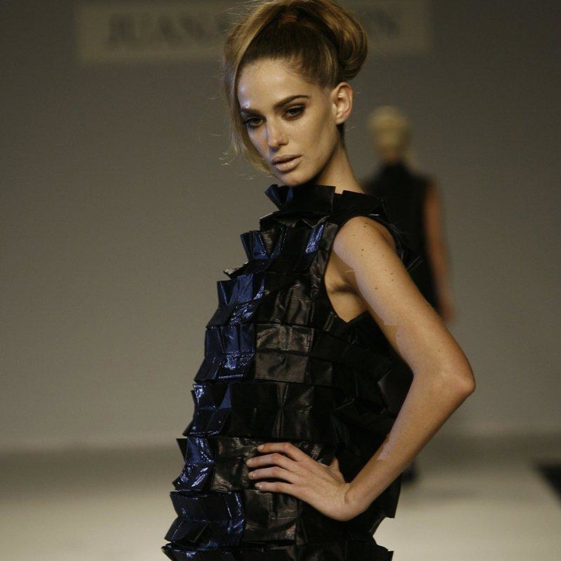 Las formas geométricas muy depuradas, casi arquitectónicas, pero con volumen son la apuesta segura de esta diseñadora. Y un único color, el negro, marca las faldas muy minis, los vestidos trapecio y los abrigos ribeteados confeccionados con tejidos como la lana, la seda, el vinilo y la fibra. La ausencia de estampados y el uso de las tachuelas son seña de identidad de esta colección.