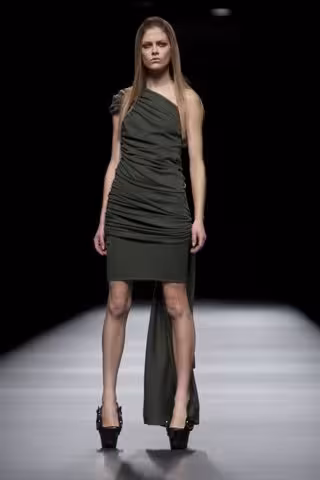 La elegancia sigue siendo el punto de partida para Juanjo Oliva en su tercera línea de ropa. El diseñador presentó una línea de varios vestidos largos con drapeados y recogidos muy similares, en los que únicamente se diferenciaba el escote.