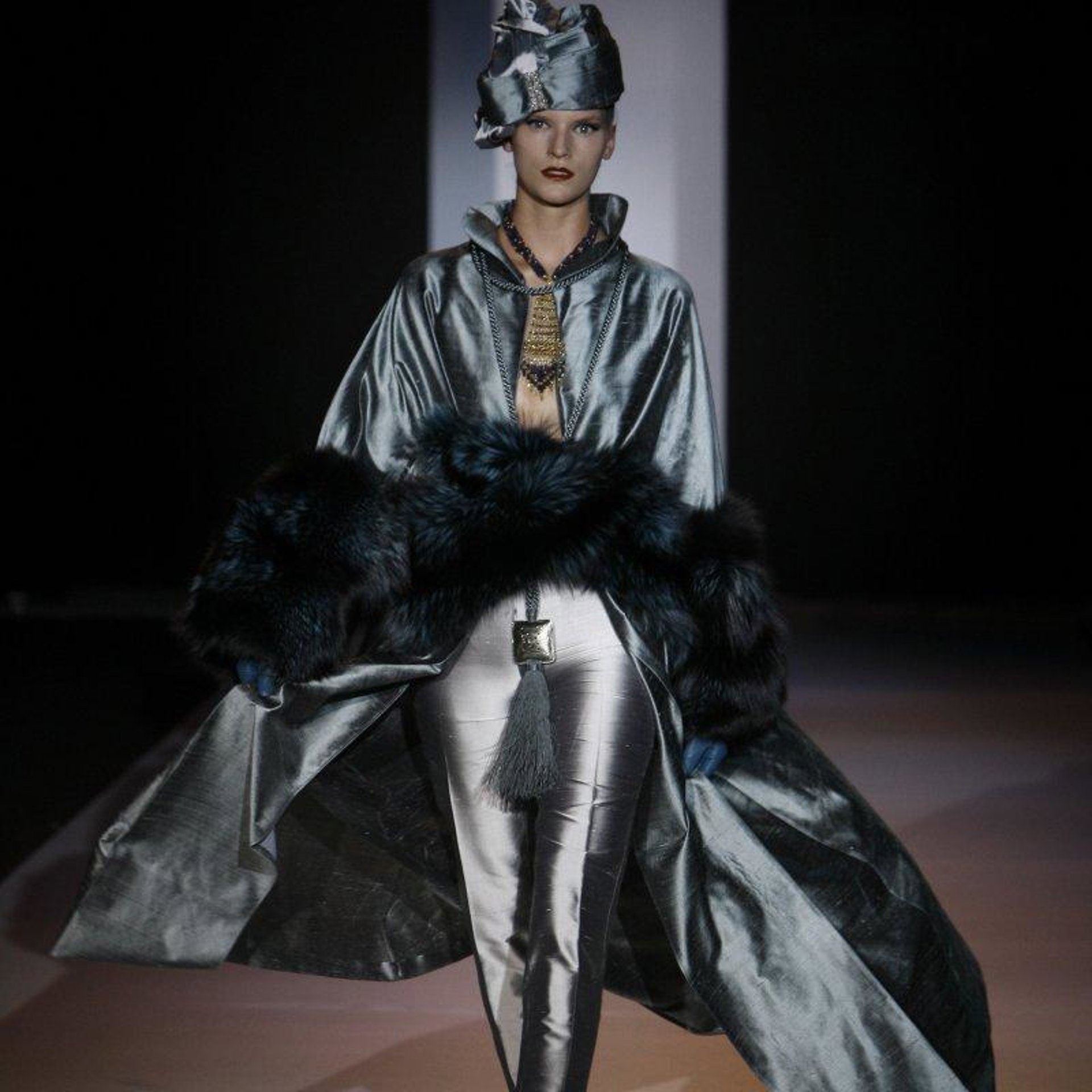 La piel se confecciona de tal manera que las formas quedan supeditas a las texturas tales como el visón, el astracán, las martas o el orilag. Unas formas como los plisados y drapeados, que consiguen una nueva visión del abrigo y del vestido.