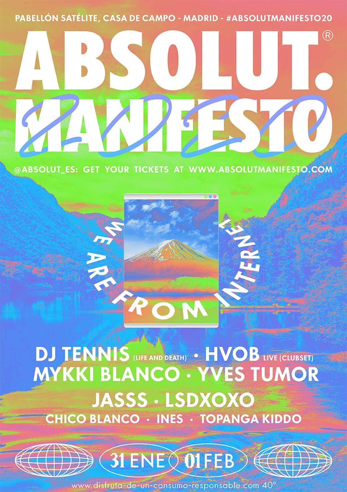 La tercera edición de Absolut Manifesto presenta un lugar que no le pertenece a nadie y en el que no importa dónde hayamos nacido: We are from Internet. Esta cita -en el Pabellón Satélite de la Casa de Campo de Madrid- regresa para crear y vivir un mundo más abierto e inclusivo con un festival que une música electrónica, urbana y experiencias artísticas.