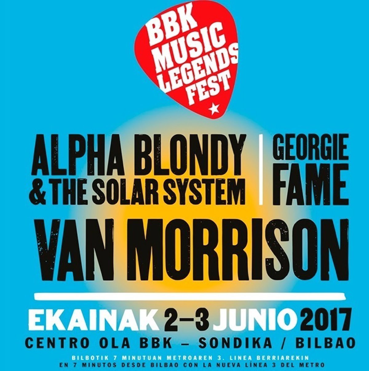 Alpha Blondy y Georgie Fame se suman a Van Morrison en el cartel de la segunda edición del BBK Music Legends Festival, que tendrá lugar los días 2 y 3 de junio de 2017 en el Centro Ola BBK de Sondika, de nuevo organizado por Dekker Events y patrocinado por la Fundación BBK.