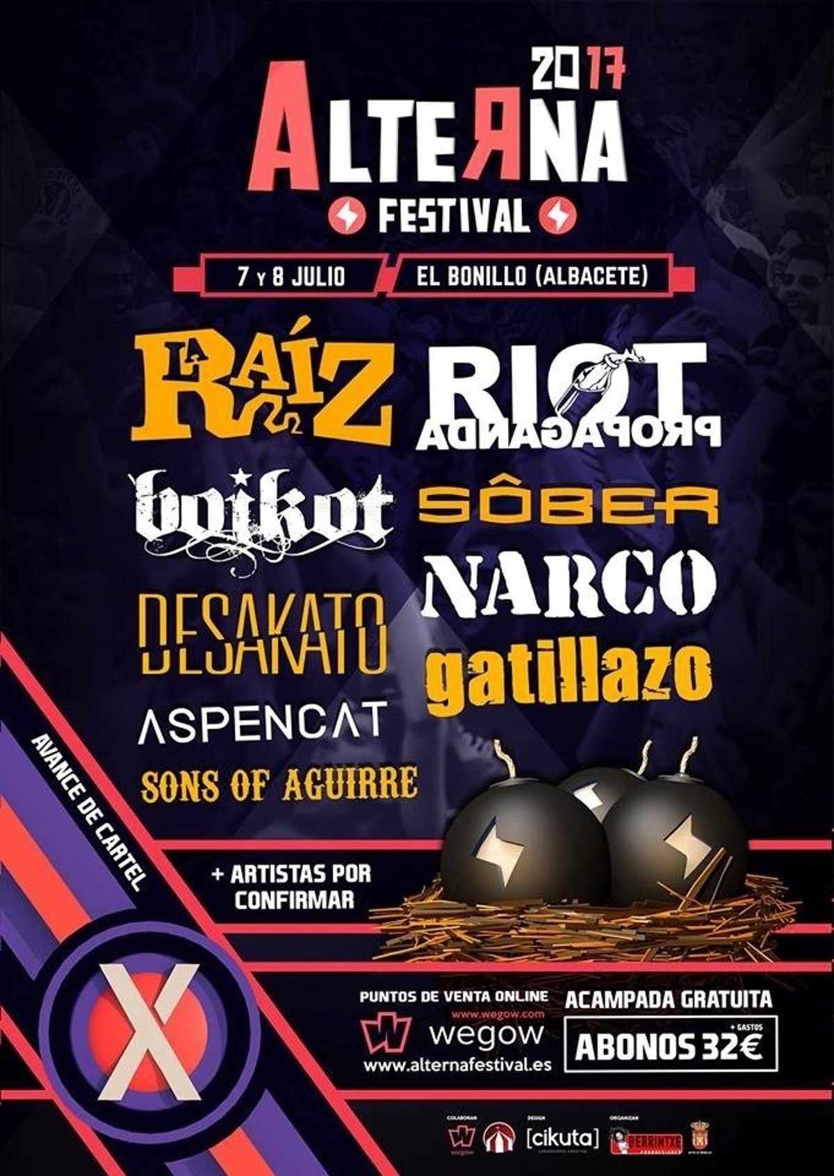 El décimo Alterna Festiva!, que se celebra los días 7 y 8 de julio en El Bonillo (Albacete), contará con la asistencia de la banda Boikot, Riot Propaganda y Desakato.
