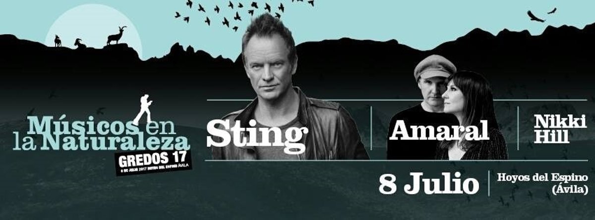 Amaral y Nikki Hill se suman a Sting para la edición 2017 de Músicos en la Naturaleza, que tendrá lugar en Hoyos del Espino, en plena sierra de Gredos, el 8 de julio de 2017.