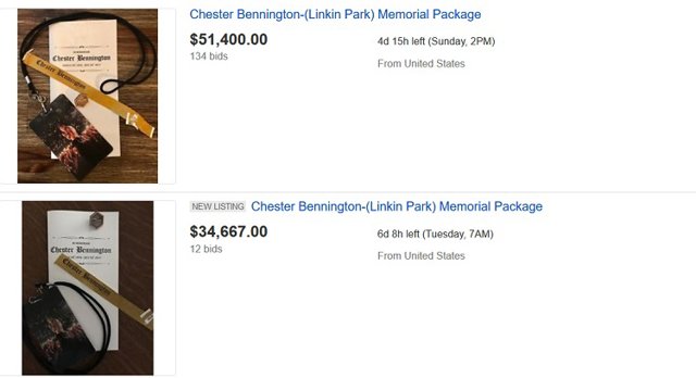En eBay, la revista localizó dos de estos paquetes, que se venden por 51.000 y 34.000 dólares. Y por eso anima a los fans a denunciar y no comprarlos para evitar que nadie se lucre con la muerte del cantante de Linkin Park.