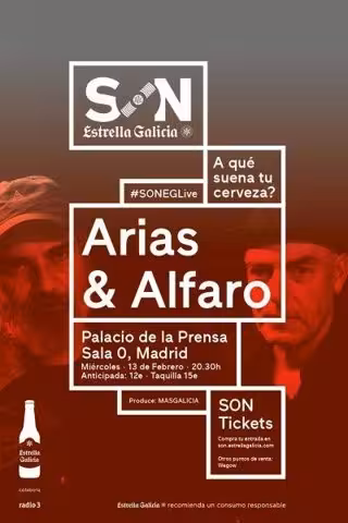 Antonio Arias, fundador de Lagartija Nick, y Fernando Alfaro, alma de Surfin' Bichos y Mercromina, protagonizarán un encuentro excepcional en directo el miércoles 13 febrero en la Sala 0 (Palacio de la Prensa) de Madrid a partir de las 21 horas, dentro del ciclo SON Estrella Galicia.