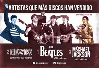 A partir de los datos de las mencionadas organizaciones, se desprende que los Beatles son, con más de 600 millones de discos vendidos, el grupo más exitoso de la historia. Y muy cerca, con una cantidad entre 500 y 600 millones, está el solista más exitoso, que no es otro que el Rey del Rock, Elvis Presley, quien, de hecho, en 2015 'ganó' 55 millones de dólares a pesar de estar muerto desde 1977. Parte de esos beneficios llegan aún de sus ventas de discos.