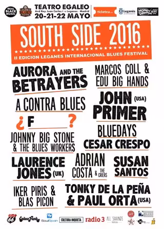 Tonky de la Peña & Paul Orta (USA), Aurora and The Betrayers, Susan Santos y Cesar Crespo son las nuevas confirmaciones del Festival Internacional de Blues de Leganés South Side, que se celebrará los días 20, 21 y 22 de mayo en el Teatro Egaleo.