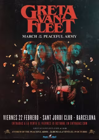 La banda estadounidense de rock Greta Van Fleet actuará el 22 de febrero en el Sant Jordi Club de Barcelona, en su única actuación en España para presentar 'March of the Peaceful Army', ha informado este miércoles la promotora Doctor Music en un comunicado.