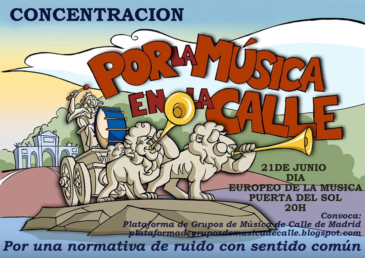 La Plataforma de Grupos de Música de Calle de Madrid se manifiestará a las 20 horas de este martes en la Puerta del Sol con batucadas y charangas contra la normativa de contaminación acústica recientemente aprobada por el Ayuntamiento de la capital, según ha informado este colectivo a través de un comunicado.
