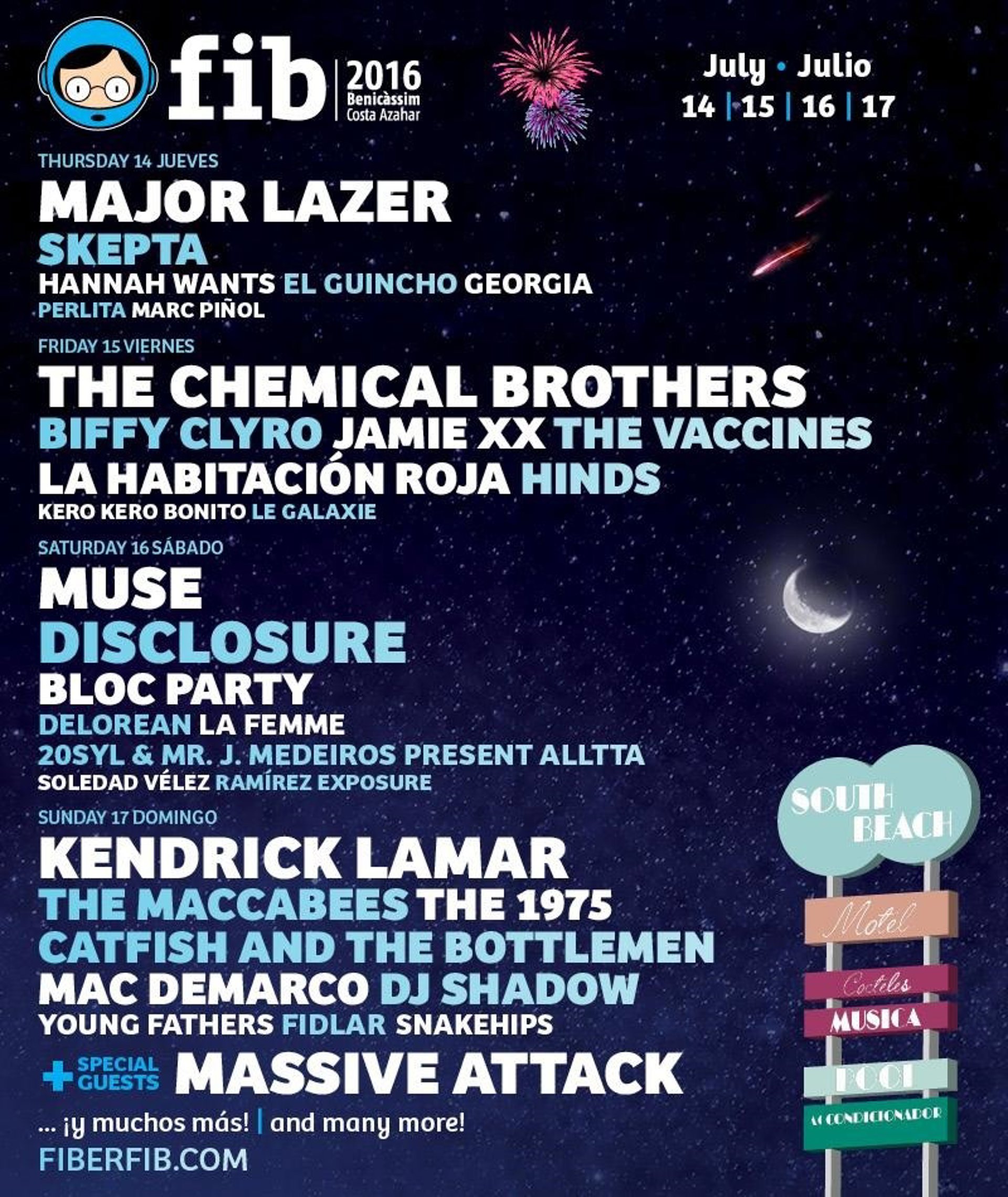 Los artistas Biffy Clyro, Skepta, DJ Shadow, La Habitación Roja, Young Fathers, El Guincho y Fidlar se incorporan al cartel del Festival Internacional de Benicàssim (FIB) 2016, que se celebrará en la localidad castellonense del 14 al 17 de julio.