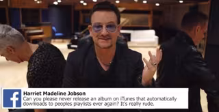 En una entrevista por Facebook con preguntas de los fans, Bono tuvo que responder a la siguiente cuestión: "¿Podríais por favor nunca más publicar un disco en iTunes que automáticamente se descargue en las bibliotecas de los usuarios? Es realmente molesto".