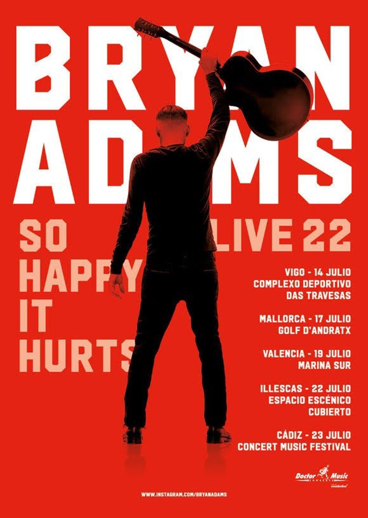 Bryan Adams ha anunciado este martes que su gira 'So happy it hurts' vuelve a España este verano con conciertos en Vigo, Mallorca, Valencia, Cádiz e Illescas (Toledo) en el mes de julio.