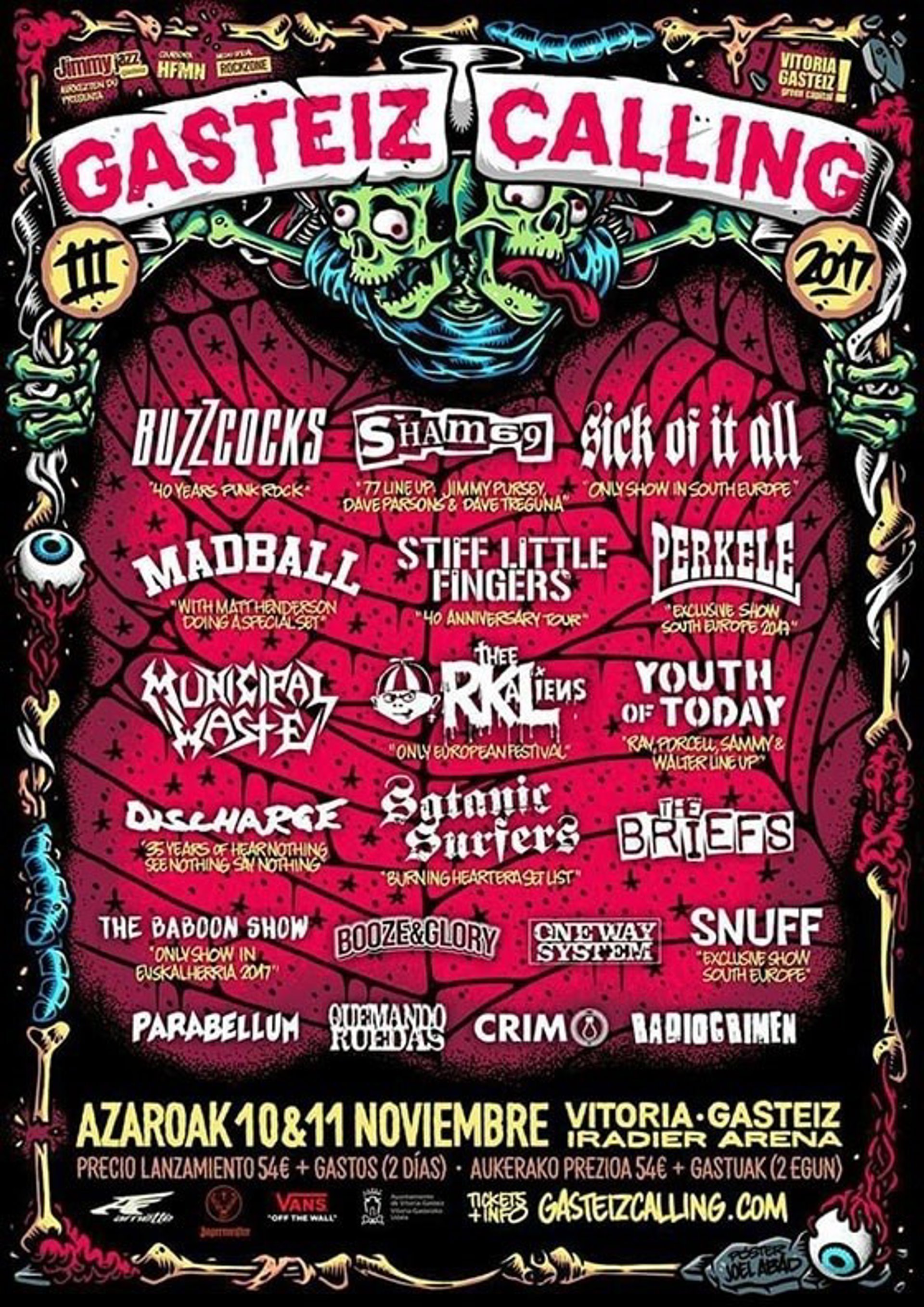 El cartel es tan potente como cabría esperar y cuenta con, entre otros muchos, Buzzcocks, Sick of it all, Sham 69, Madball, Stiff little fingers y Perkele.