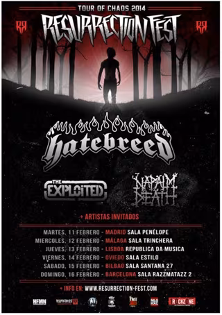 La promotora aclara que la gira 'Tour of Chaos 2014' sigue adelante con Hatebreed y Napalm Death para los conciertos previstos en Oviedo (este viernes 14 de febrero), Bilbao (sábado 15 de febrero) y Barcelona (el domingo 16).