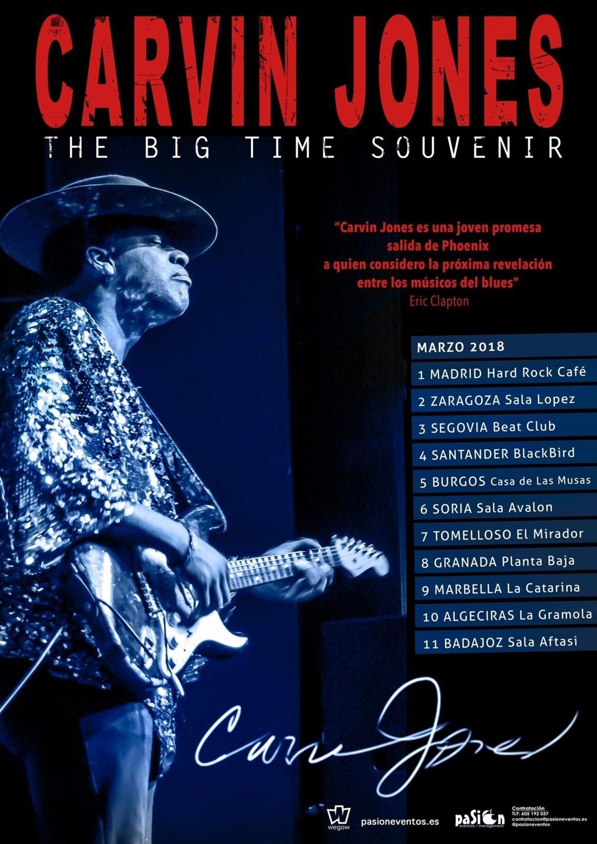 Carvin Jones anuncia su regreso a España con una gira en la que presentará su nuevo álbum, que llevará por título The big time souvenir y ha sido grabado en nuestro país con producción de Pasión Records.