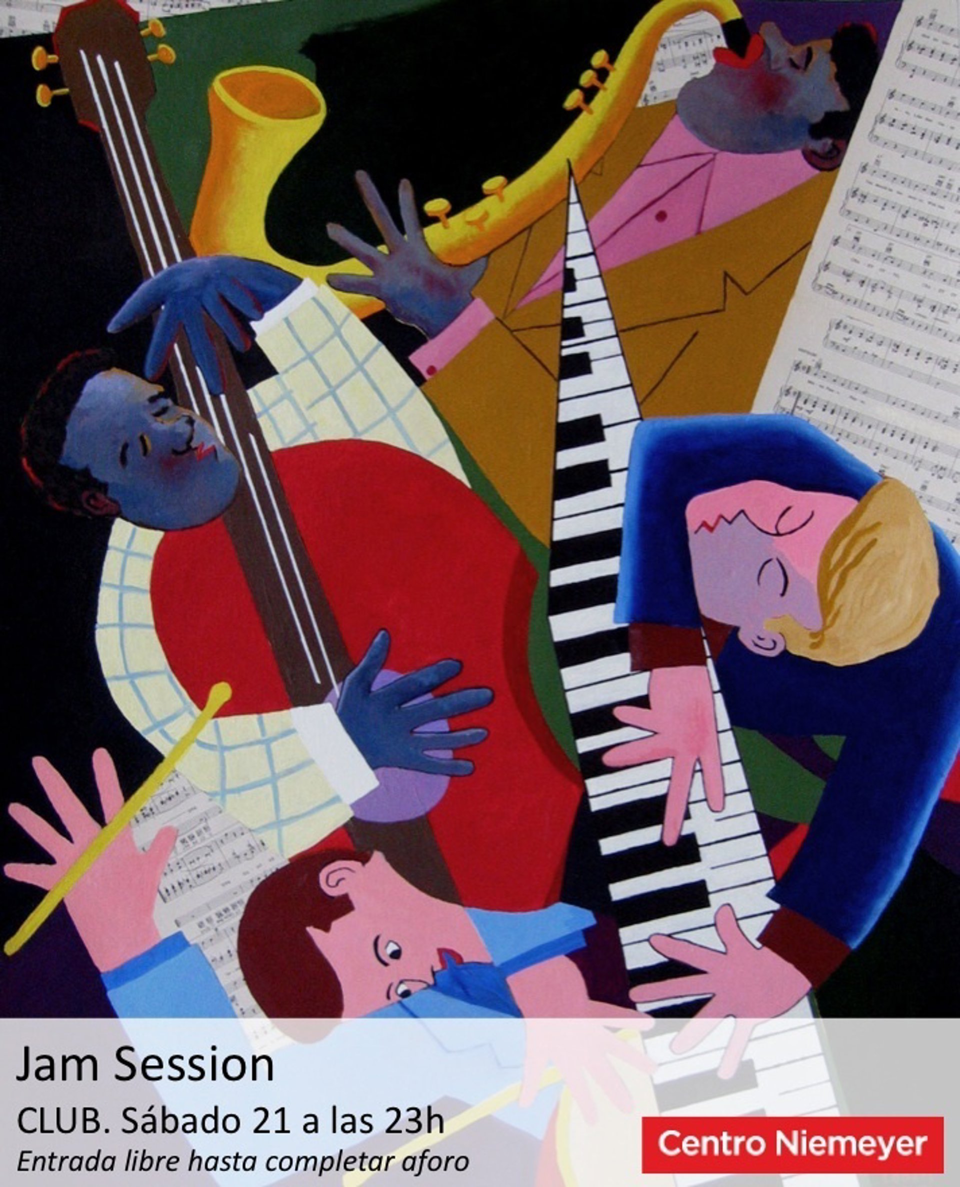 El Centro Niemeyer organiza la primera Jam Session del Club, que tendrá lugar este sábado, 21 de mayo, a las 23.00 horas. Según ha informado el Centro Niemeyer, "sin ensayos previos, sin conocerse, sin haber tocado juntos, diferentes músicos se subirán al escenario del Club alternándose, divirtiéndose, improvisando y mezclando sus ideas, sus técnicas y su experiencia".