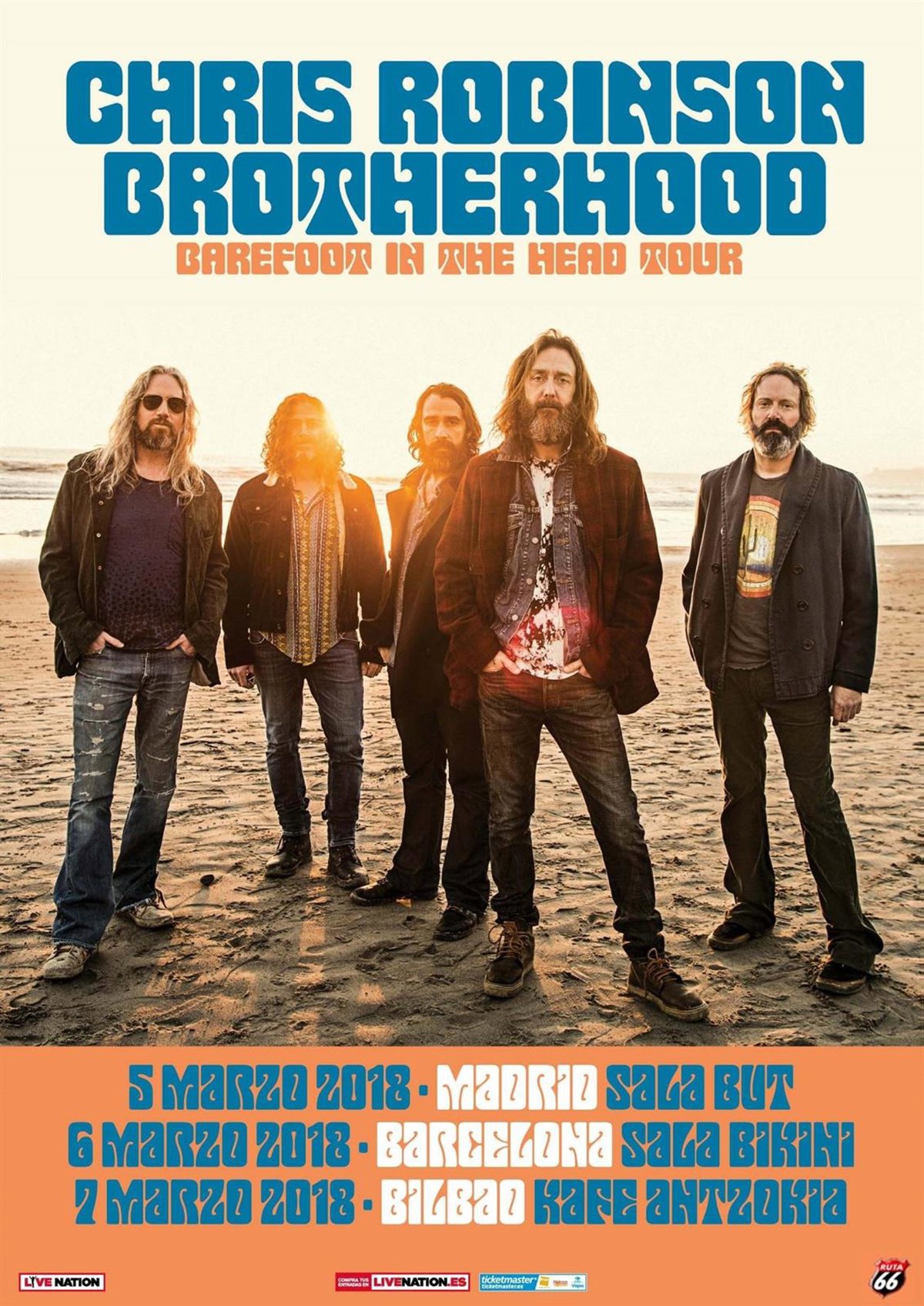Chris Robinson Brotherhood, la banda de blues americana del lider y vocalista de The Black Crowes, confirma tres conciertos en España dentro de su tour Barefoot In The Head Tour el próximo mes de marzo: el 5 en la Sala But de Madrid, el 6 en la Sala Bikini de Barcelona y el 7 en el Kafe Antzokia de Bilbao.