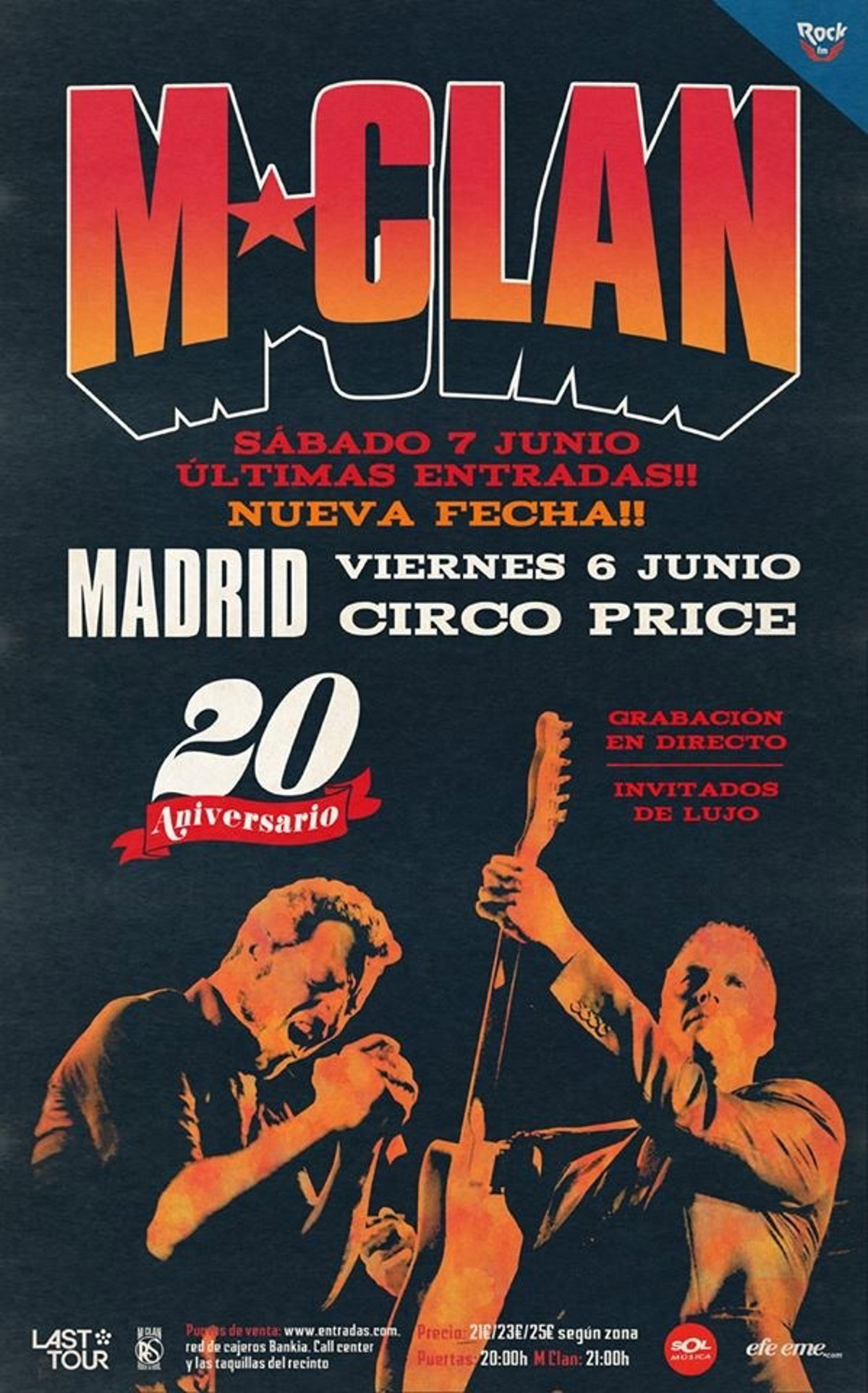 M Clan cumplen 20 años en la carretera y quieren celebrarlo de una manera muy especial. Así, con las entradas para el concierto del sábado 7 de junio en el Teatro Circo Price de Madrid a punto de agotarse, la banda anuncia ahora una segunda fecha para el viernes 6 en el mismo recinto.