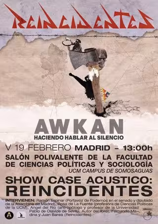 Reincidentes publicaron en diciembre Awkan, un libro-disco que repasa sus casi treinta años de andadura profundizando de manera inusitada en la parte sociológica y antropológica de algunas de sus canciones más populares, reflexionando sobre temas como el maltrato, América Latina, la memoria histórica, el auge de los fascismos, la Iglesia o conflictos enquistados como Sáhara y Palestina.