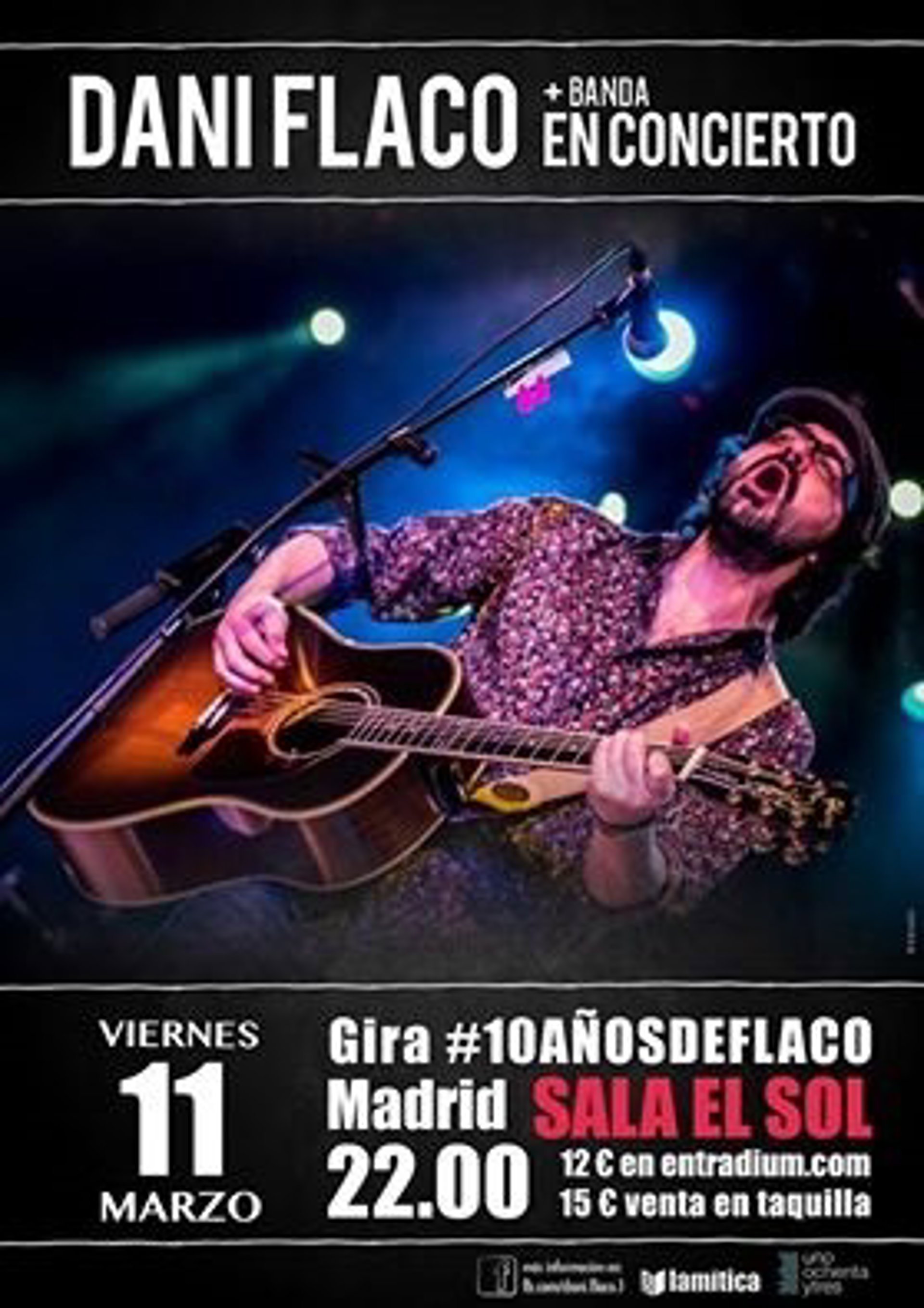 Dani Flaco celebra sus diez años en la música con un concierto con banda en la Sala El Sol de Madrid.