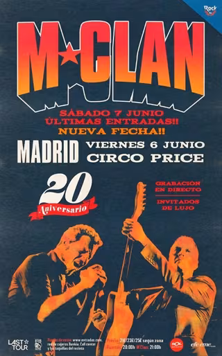 M Clan, la banda liderada por Carlos Tarque y Ricardo Ruipérez, ya han agotado entradas para los dos conciertos de 20 aniversario que celebrarán los días 6 y 7 de junio en el Teatro Circo Price de Madrid.