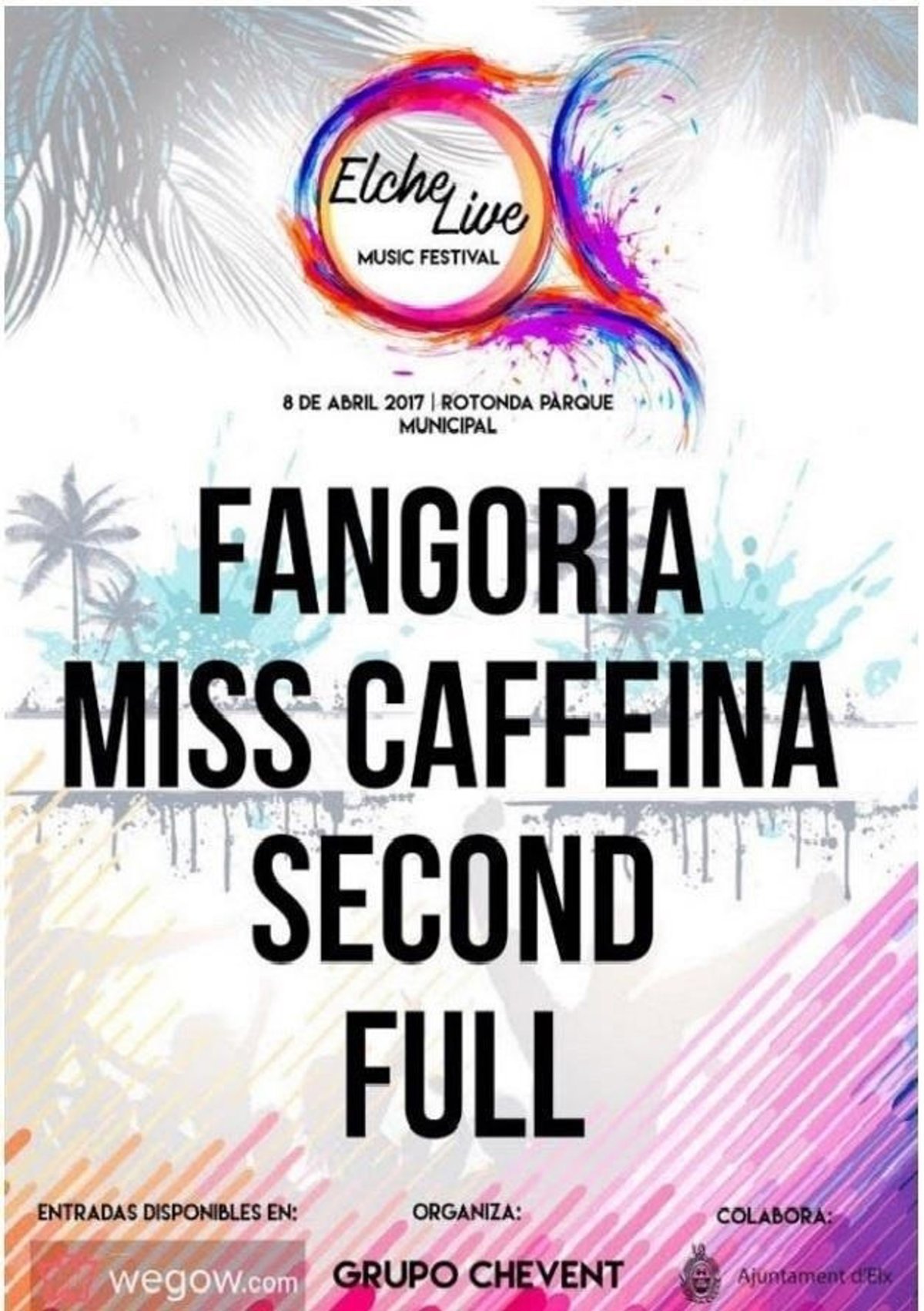 El Elche Live Music Festival ha confirmado las actuaciones de Fangoria y Miss Caffeina para la cita del próximo 8 de abril y en la que ya estaban anunciados Full y Second. El festival se celebrará en el aparcamiento de Candalix.
