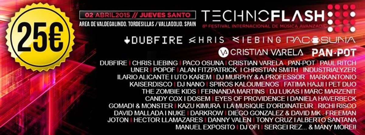 La VIII edición del Technoflash contará con cinco escenarios (main stage --central-- y otros cuatro) y ofrecerá autobuses desde 42 ciudades españolas para facilitar la llegada a Tordesillas de las 10.000 personas que se espera que asistan.