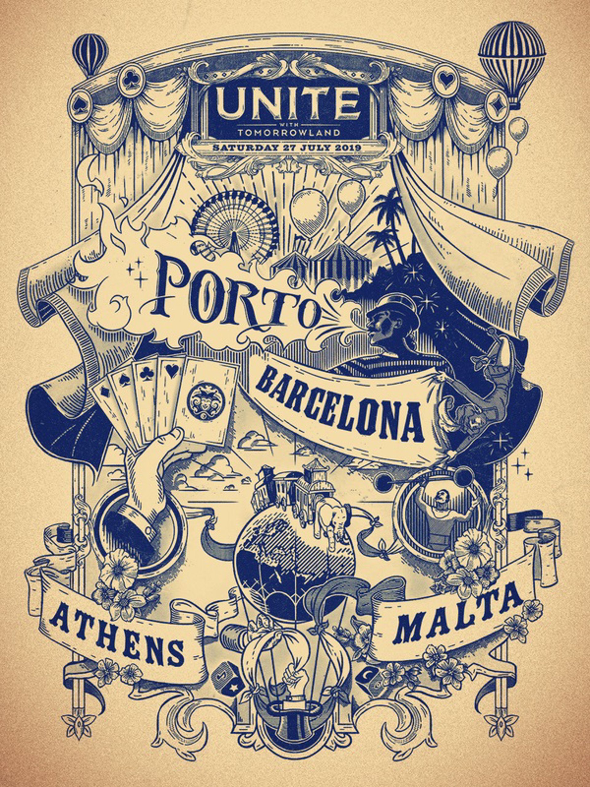 UNITE with Tomorrowland conectará al público desde Grecia, Malta, Portugal y España con Tomorrowland en Bélgica. El festival trae este verano el circo a la ciudad condal con un nuevo show, TheAmicorum Spectaculum, una de las temáticas más míticas en la historia de Tomorrowland.