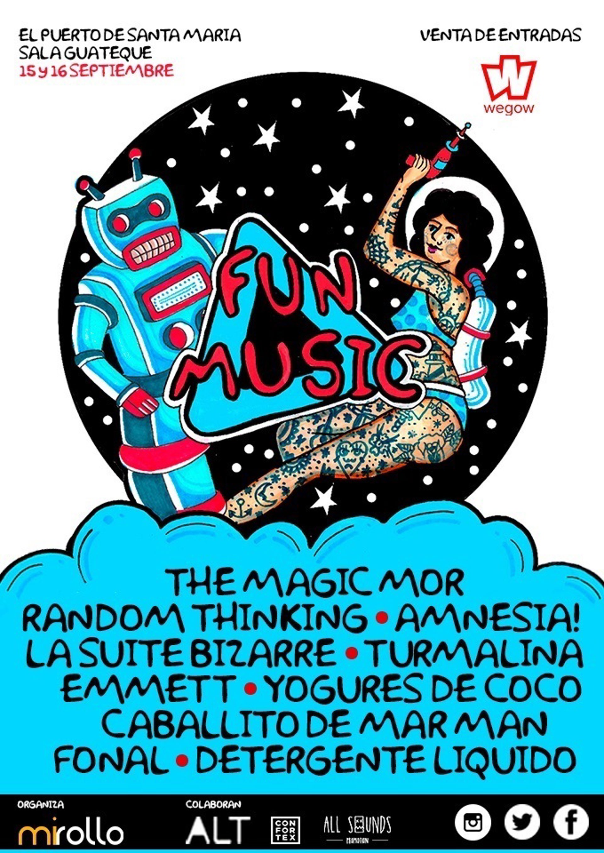 Con la confirmación del grupo Detergente Líquido, Fun Music cierra el cartel de este festival, con el que Mi Rollo vuelve a la carga esta vez con una propuesta a la altura de los festivales que ya organizó en Madrid, Zaragoza, Murcia o Alicante, entre otras ciudades.