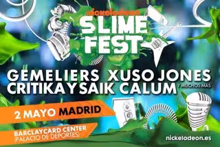 Gemeliers, Xuso Jones, Critika y Saik y Calum, primeros confirmados del Nickelodeon Slime Fest, el festival para toda la familia que llenará de toneladas del famoso slime (sustancia viscosa de color verde) el sábado 2 de mayo el Barclaycard Center de Madrid.